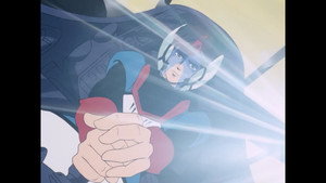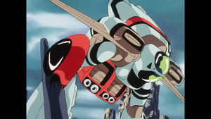 Kei and Mome manage to escape, and race back to the caravan, where the modified Bronco is ready. What Kei doesn't know is that most of the actuators are not hooked up yet, and thus the Bronco cannot do anything else but fly. They take off and manage to get rid of the Terram soldiers.